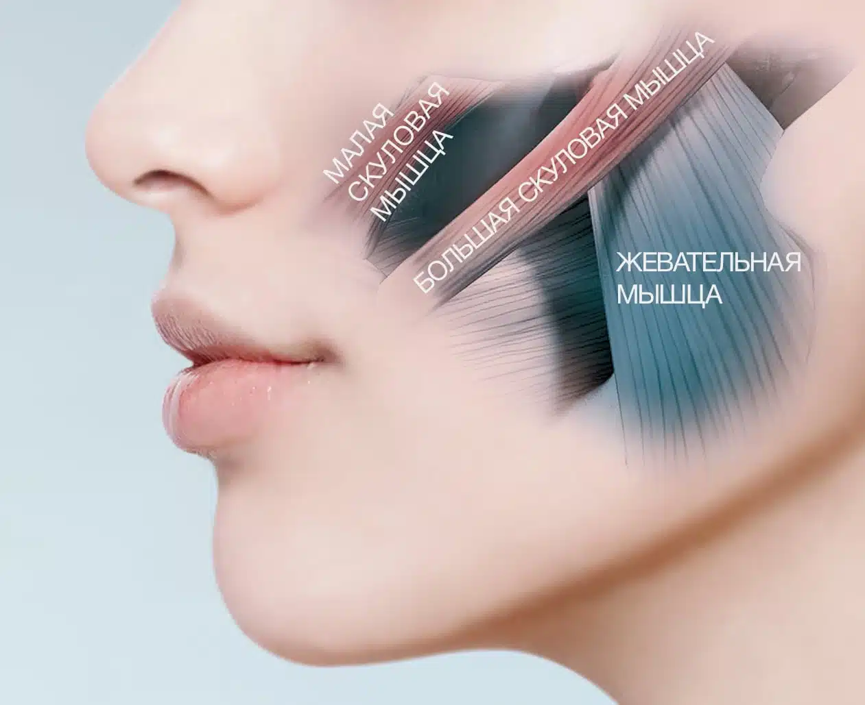 Негізгі және кіші zygomaticus бұлшықеттерін жаттықтыруға арналған EMS. Ол теріні ішкі жағынан қолдайтын бұлшықеттерді нығайтады*, ауырлық күшіне төзімді тонды, мәнерлі бет жасайды.