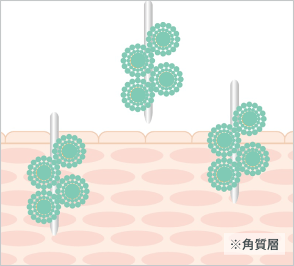 Белсенді ингредиенттермен қапталған спикулалар белсенді заттарды теріге тікелей жеткізеді.