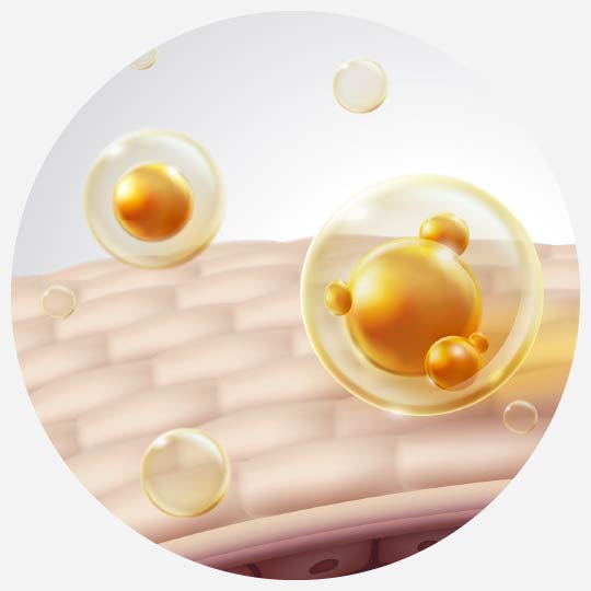 Қартаюға қарсы белсенді ингредиенттер ретінде белгілі қатайтатын ингредиенттердің 6 түрі тұрақтылықты және терінің тереңдігіне жеткізу тиімділігін арттыру үшін нано-инкапсуляцияланған.