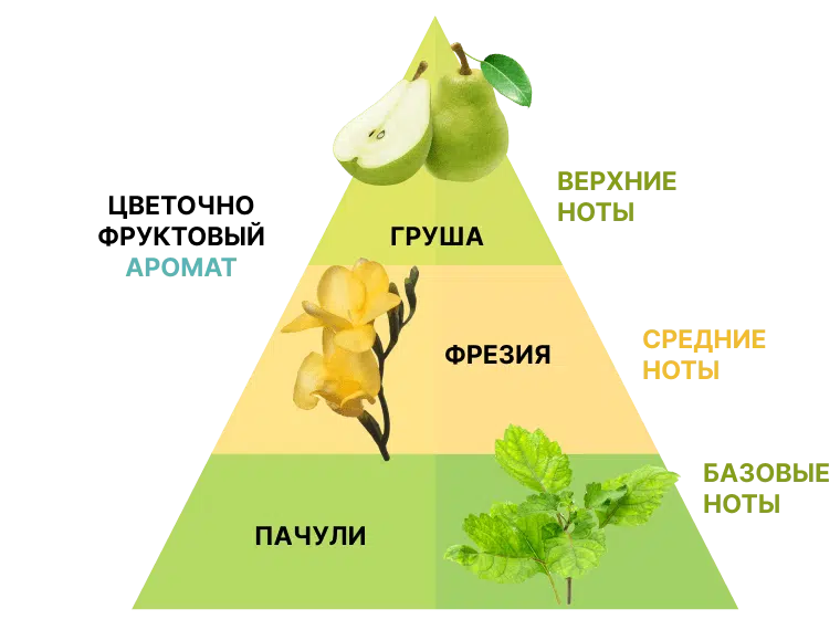 Цветочно-фруктовый аромат, сочетающий свежесть фруктов с нежной и элегантной фрезией.