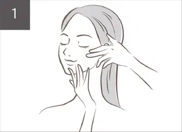 - Массируйте от центра лица кнаружи, используя восходящие движения, чтобы способствовать впитыванию. Нанесите дополнительный слой на проблемные зоны (т.е. линии улыбки и т.д.) для достижения большего результата.