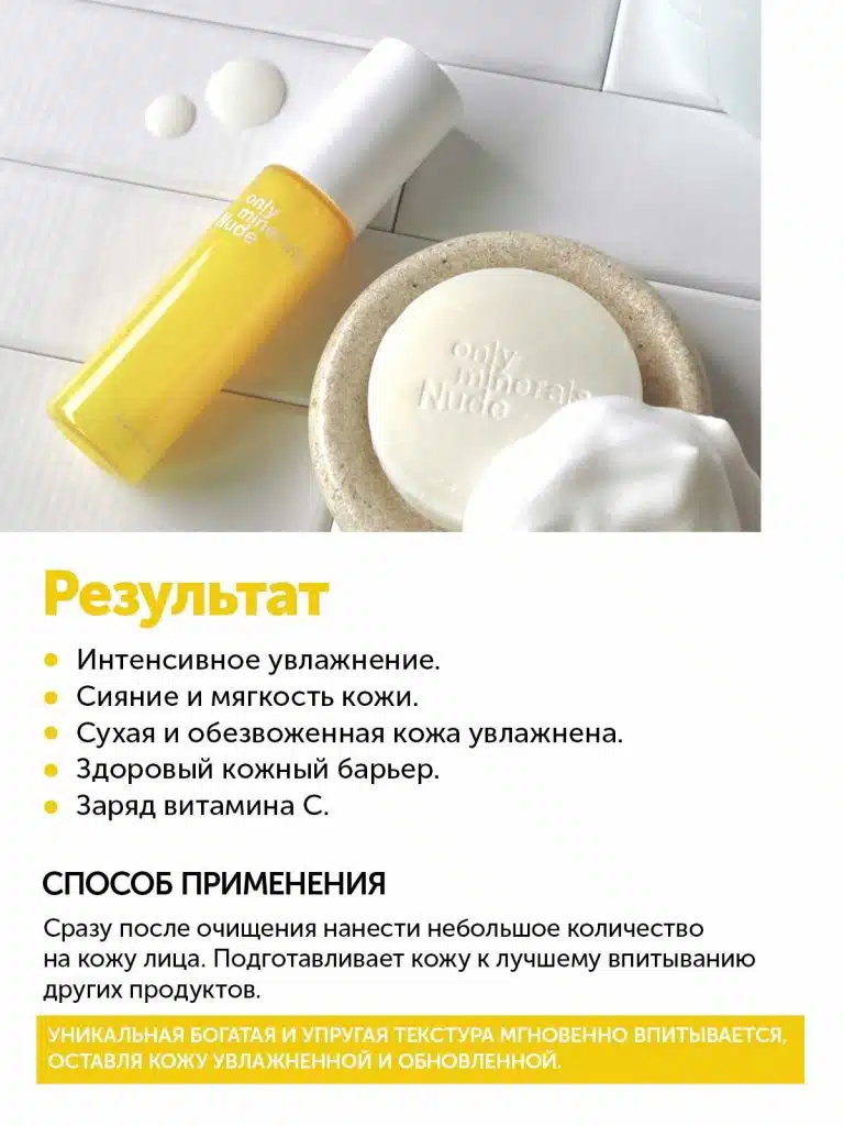 - Формула с идеальным сочетанием четырех видов производных витамина С. Зарядите кожу сразу после очищения!