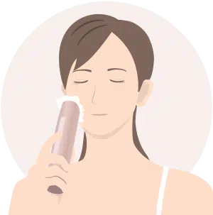 Наденьте салфетку на прибор, закрепите удерживающим кольцом. Нанесите на лицо или салфетку профессиональную косметику. Выберите нужный режим работы и включите прибор.