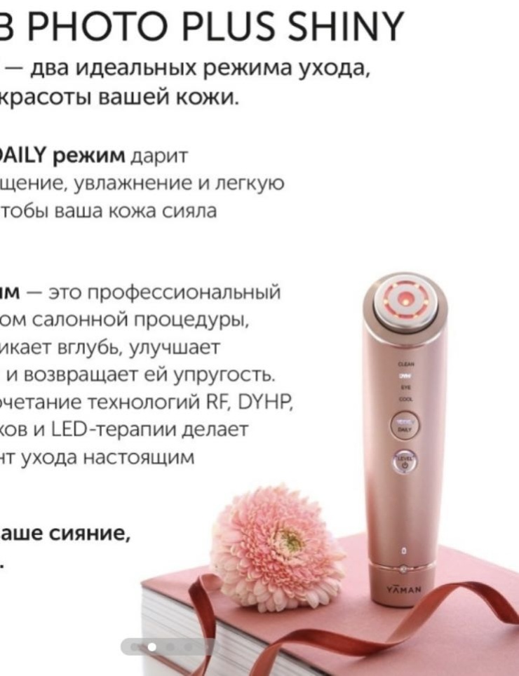 Шайни заменяет баночки с кремами и биоревитализацию, Шикарное увлажнение которое не даст ни один крем и это правда! Режим DHYP подходит для молодой кожи от 25 до 40 лет. Для более старшего возраста лучше выбирать аппарат мощнее. От качества всей продукции YAMAN я восторге, начиная с упаковок, коробочек и качеством самих аппаратов. Стоящие фирменные уходовые домашние бьюти аппараты на каждый день!
