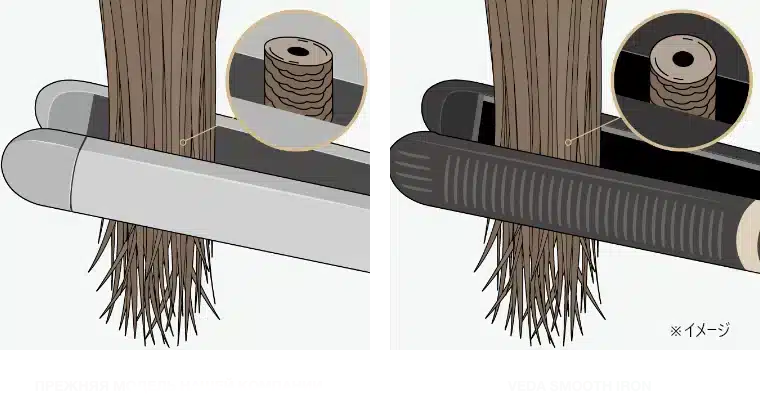 Благодаря возможности укладки при низкой температуре и мягкой пружинной конструкции снижается трение между волосами и пластинами, а также предотвращается появление статического электричества. Это позволяет добиться более гладких волос и заметно облегчить расчёсывание по сравнению с предыдущей моделью.